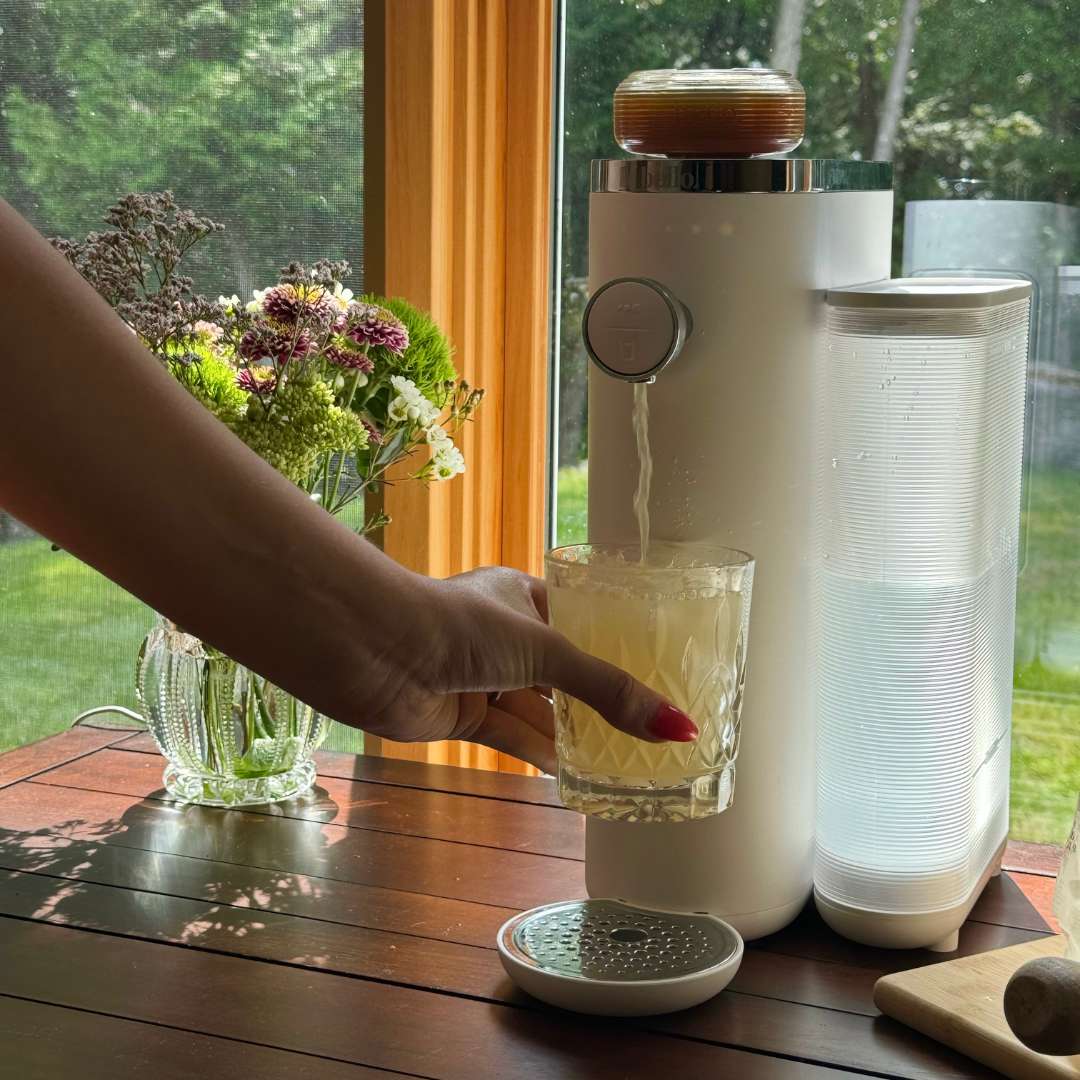 One single glass capsule makes up to five litres of wellness beverages using 10x less packaging and 25x less CO2 than a plastic-bottled beverage.